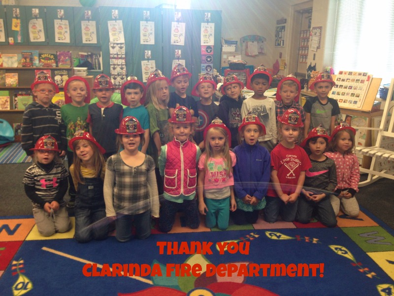 The Clarinda Fireman are here in full force! Thank you so much to all the volunteers that teach our students how to be safe around fire. Click on the picture at right to watch a slideshow of fire prevention activities.
